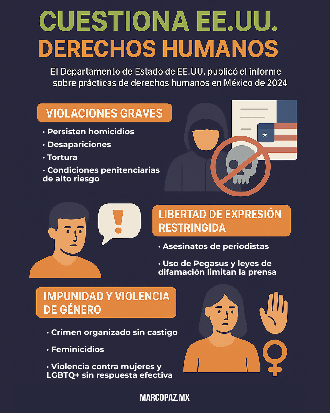 El reciente Informe sobre Prácticas de Derechos Humanos en México de 2024, publicado por el Departamento de Estado de Estados Unidos, revela un panorama preocupante sobre la situación de los derechos humanos en el país. El documento, dado a conocer este mes, destaca violaciones graves, impunidad generalizada y desafíos estructurales que afectan a diversos sectores de la sociedad mexicana.