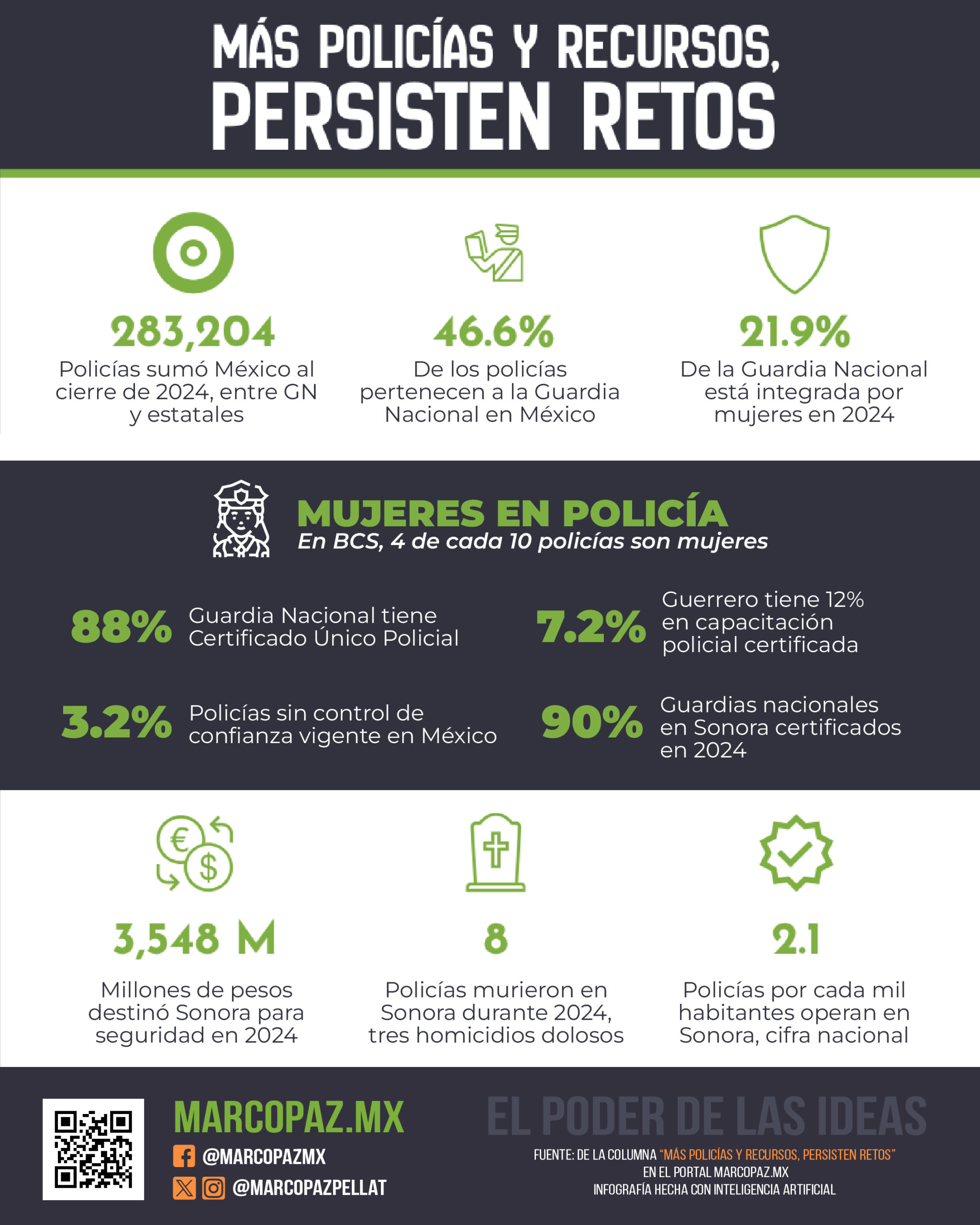 El balance es claro: México y Sonora invierten más en seguridad, pero la clave no está solo en sumar policías, sino en garantizar corporaciones profesionales, confiables y dignificadas, capaces de generar la seguridad real que exige la ciudadanía.
