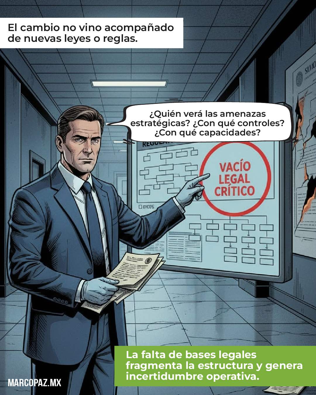 El cambio institucional no fue acompañado de una reforma legal que clarificara quién asumirá la vigilancia de amenazas estratégicas, bajo qué reglas se llevará la cooperación internacional o qué controles civiles garantizarán su uso adecuado. El vacío resultante genera incertidumbre operativa y fragmenta capacidades que deben ser especializadas, profesionales y continuas.