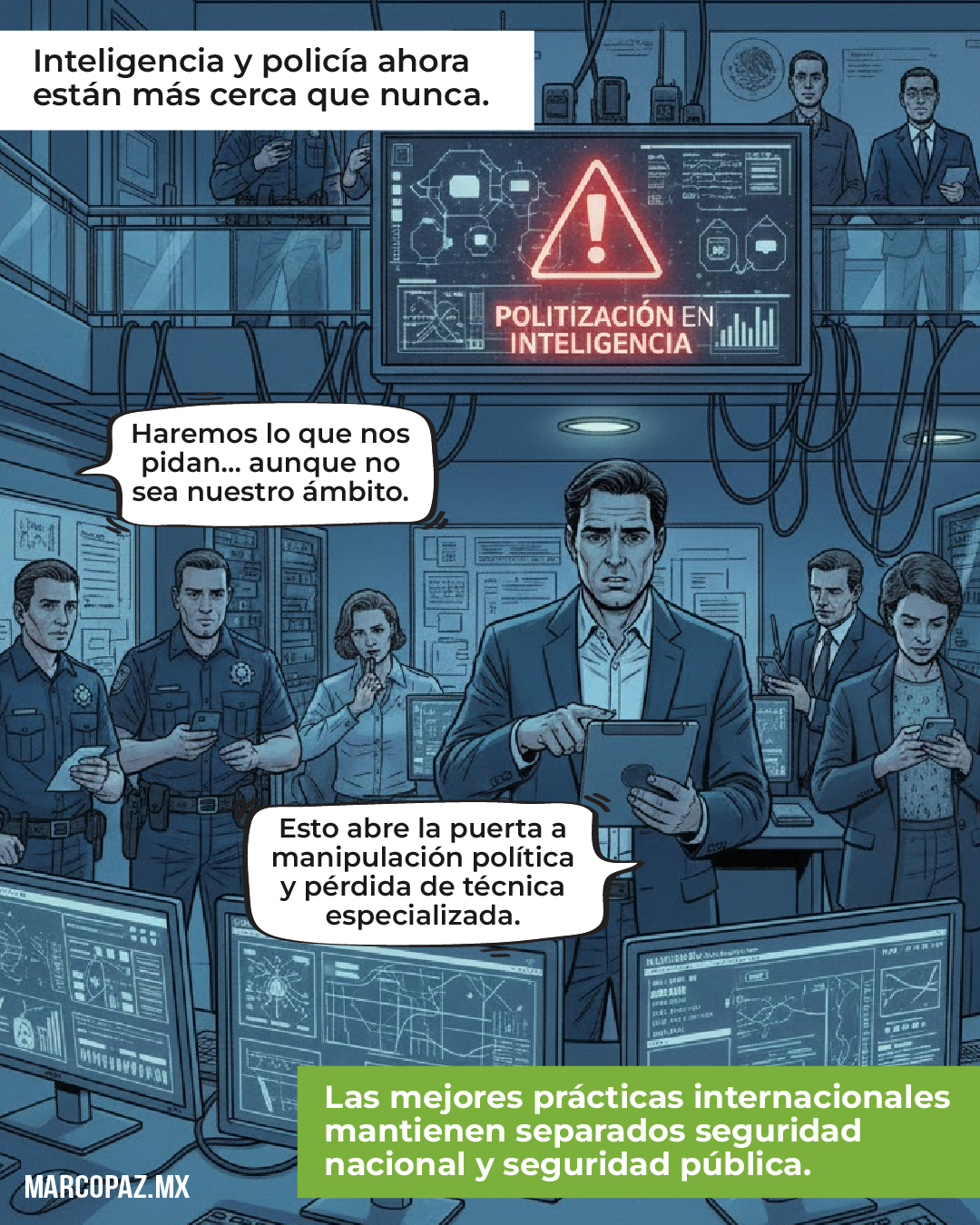 Además, al acercar las funciones de inteligencia al ámbito policial, se abre la puerta a la politización, se reduce la profundidad técnica y se pierde alineación con las mejores prácticas internacionales, donde seguridad nacional y seguridad pública mantienen mandatos y controles separados.
