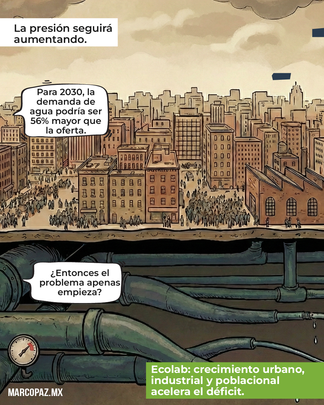 A esta presión estructural se suma una proyección que enciende las alarmas. Ecolab advierte que, si no se actúa, hacia 2030 la demanda de agua podría ser hasta 56% mayor que la oferta disponible. Hoy la situación puede parecer estable en algunas regiones, pero el crecimiento poblacional, industrial y urbano empuja a los sistemas de suministro hacia un punto de quiebre.