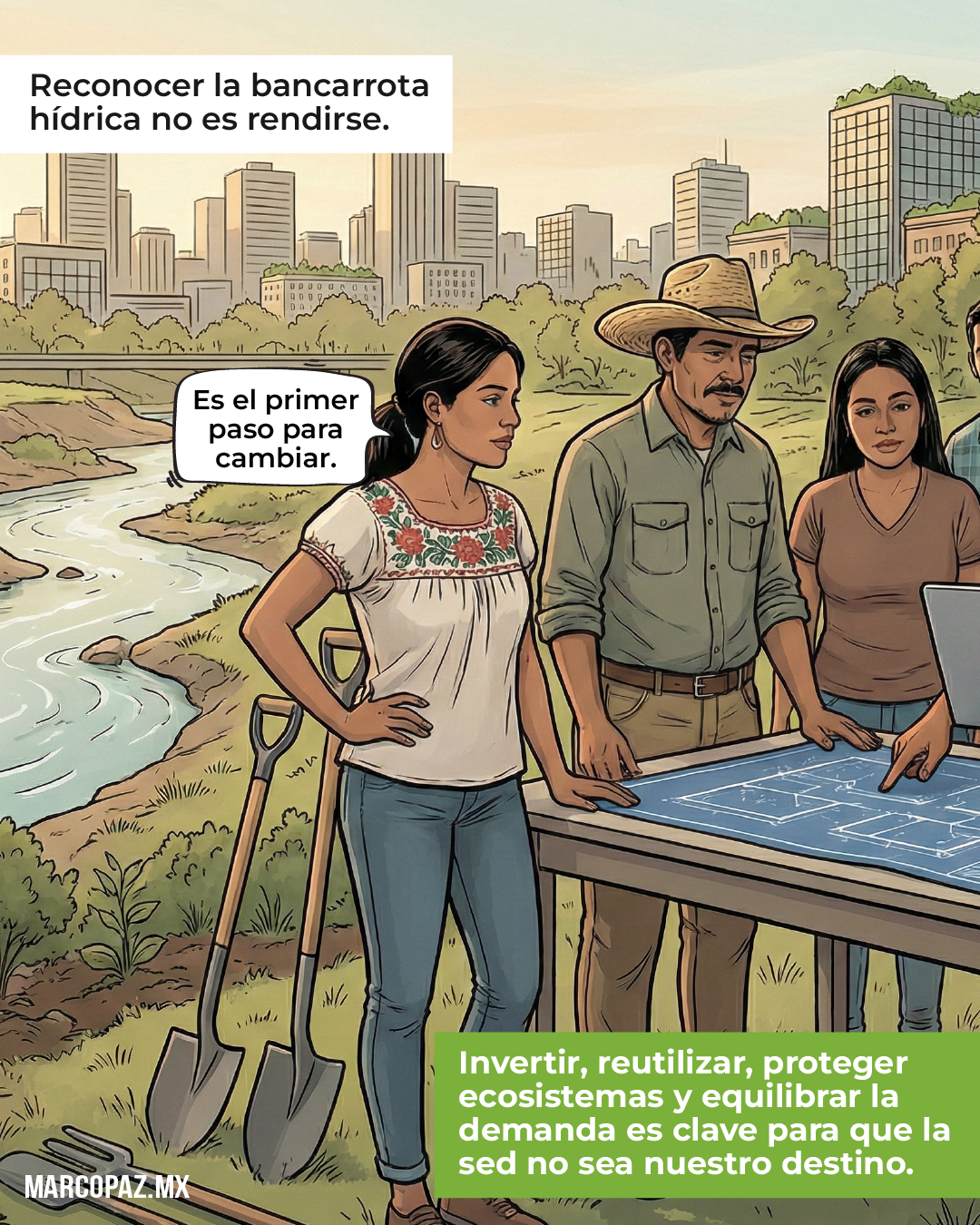 El mensaje central es contundente: seguir tratando el agua como una crisis temporal es una ilusión peligrosa. La bancarrota hídrica implica aceptar que algunos daños ya no son reversibles en escalas humanas. Los acuíferos compactados no se recargan fácilmente, los humedales desaparecidos no regresan por decreto y los ecosistemas colapsados no se restauran solo con más obra pública.
