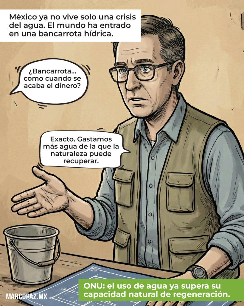 México ya no enfrenta solo una “crisis del agua”. El más reciente reporte del Instituto de la Universidad de las Naciones Unidas sobre Agua, Medio Ambiente y Salud advierte que el mundo ha entrado en una etapa de bancarrota hídrica: un punto en el que el uso del agua ha superado de forma sostenida la capacidad natural de los sistemas para recuperarse. En términos claros, estamos gastando no solo el “ingreso” anual de ríos y lluvias, sino también los “ahorros” acumulados en acuíferos, suelos, lagos y ecosistemas que tardaron siglos en formarse.